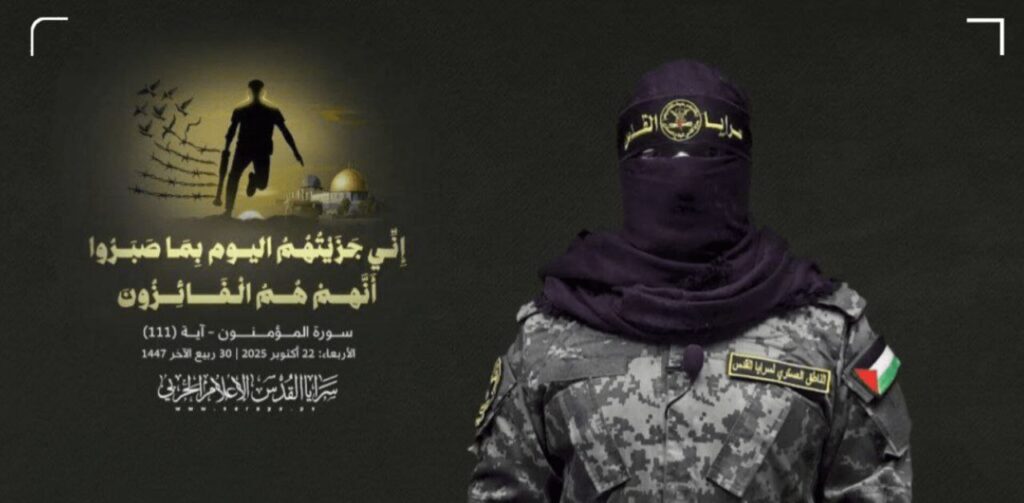🔹 چہرہ ڈھانپے اور مانوس آواز کے ساتھ، نئے ابوحمزہ "سرایا القدس” (القدس بریگیڈ) کے ترجمان کے طور پر نمودار ہوئے اور ایک زوردار بیان میں لڑائی کے تسلسل، سیکڑوں مجاہدین کی شہادت اور ہتھیار و مزاحمت کے ساتھ اٹل عہد کی بات کی۔